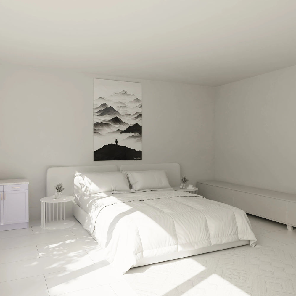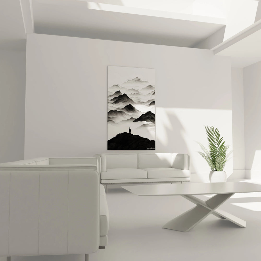 Cette œuvre puise son inspiration dans les paysages asiatiques en encre de Chine et le romantisme allemand, mêlant l’intensité émotionnelle à une esthétique graphique contemporaine. Cette fusion offre une expérience visuelle riche, tout en simplicité, où chaque détail invite à la rêverie.