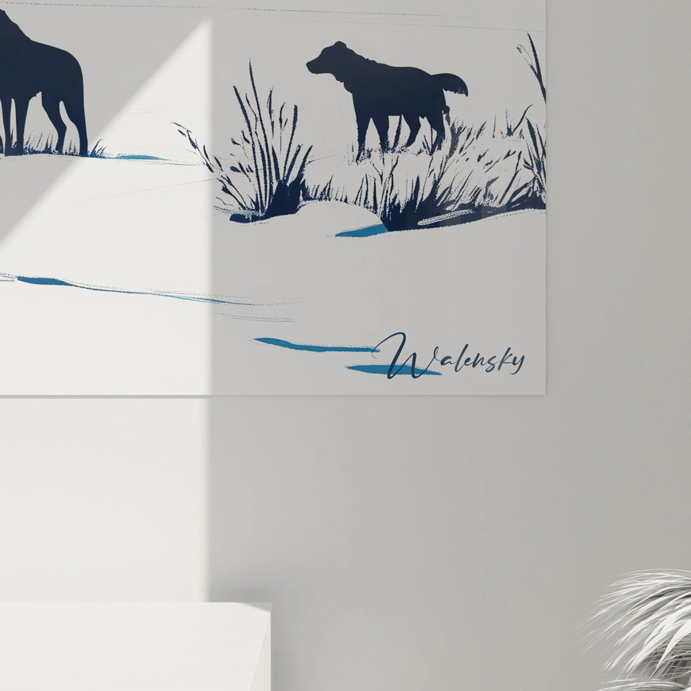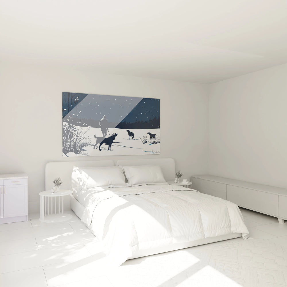 Chaque détail est pensé pour éveiller vos sens : la fraîcheur du vent, le craquement feutré des pas dans la neige, la magie d’un ciel nocturne étoilé. Ce tableau sublime est une alliance parfaite entre minimalisme raffiné et émotion profonde.