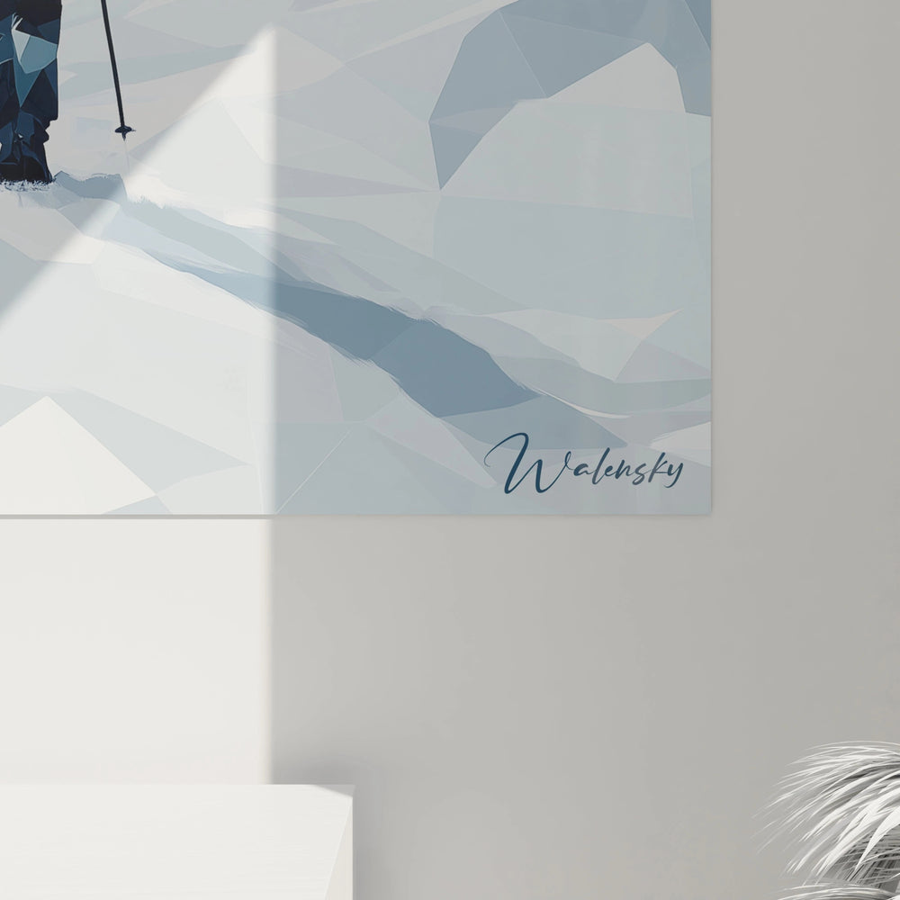 Ce tableau séduit par son style épuré, mélange subtil de formes géométriques et de surfaces facettées qui insufflent un relief unique au paysage. Les nuances harmonieuses de blanc, bleu et noir apportent profondeur et fraîcheur, soulignant la beauté brute du climat montagneux. Installé dans votre intérieur, il devient une pièce maîtresse qui capte le regard et invite à l’évasion.