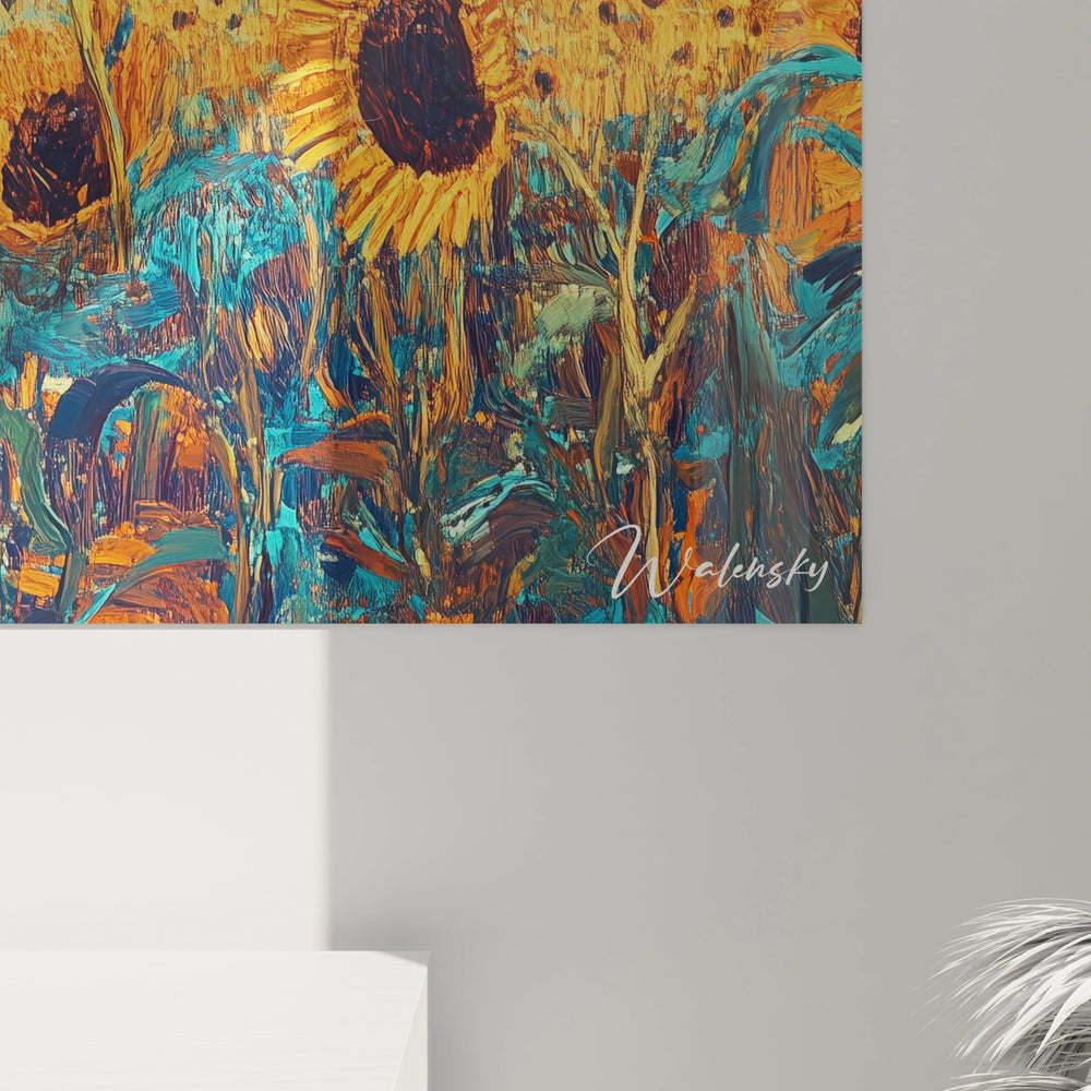 Plongez au cĆur de la nature rayonnante avec ce tableau qui cĂ©lĂšbre lâessence mĂȘme des tournesols, immortalisĂ©s Ă la maniĂšre du maĂźtre Vincent Van Gogh. Ce chef-d'Ćuvre contemporain capturera votre regard par son Ă©clat et sa vitalitĂ©, apportant Ă votre intĂ©rieur une Ă©nergie lumineuse et chaleureuse.