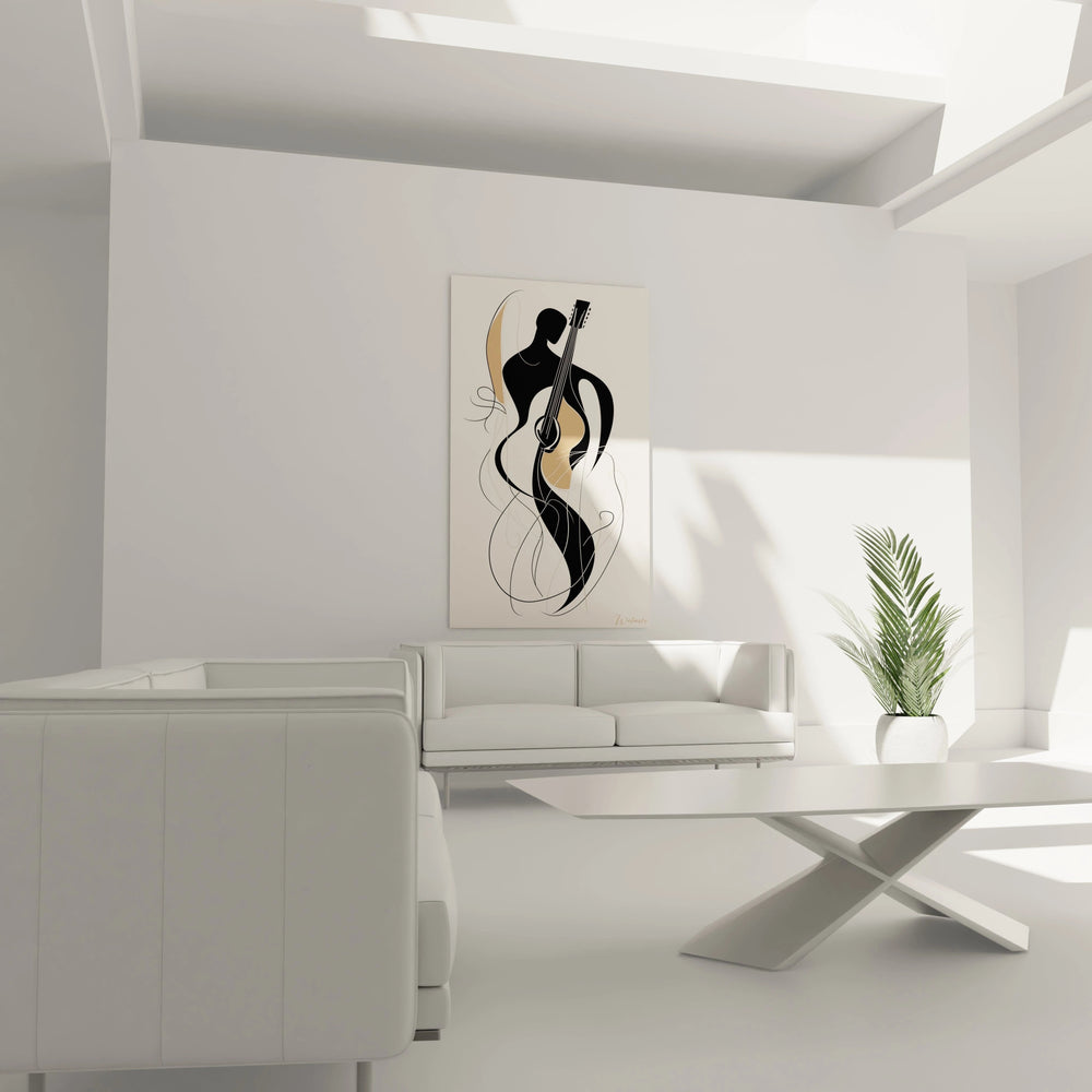 Plongez dans l’univers raffiné où la musique rencontre la forme avec ce tableau exceptionnel, hommage inédit à Georges Braque. Ici, chaque courbe et chaque contraste racontent une histoire de mouvement et d’émotion, évoquant la symphonie visuelle d’un musicien et de sa guitare fusionnés avec grâce.