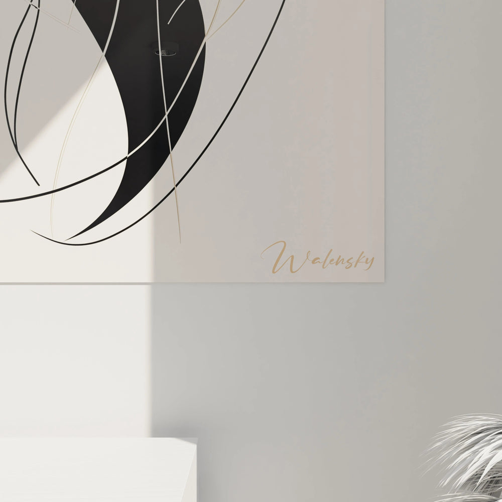 S’inspirant du mouvement cubiste et des lignes stylisées de l’Art Déco, cette création célèbre la fluidité et l’expression artistique avec une modernité intemporelle. Chaque courbe rappelle une calligraphie orientale, transformant le tableau en un véritable langage visuel captivant, capable d’éveiller votre imagination à chaque instant.