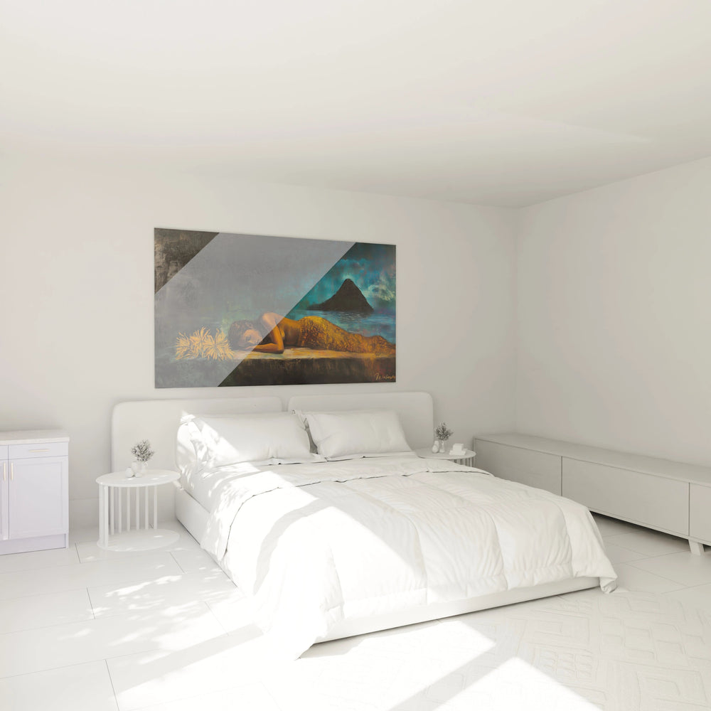 Plongez dans une atmosphère envoûtante où le rêve et la réalité se confondent, grâce à ce tableau d’exception qui rend hommage à la célèbre œuvre de Paul Gauguin. Vous êtes invité à retrouver la douceur immobile d’une figure endormie, symbole de paix intérieure et de communion profonde avec la nature sauvage des îles polynésiennes. Chaque regard porté sur cette création invite à un voyage sensoriel, comme une caresse de la brise tropicale glissant sur votre peau, une invitation irrépressible à la détente et à l’évasion.