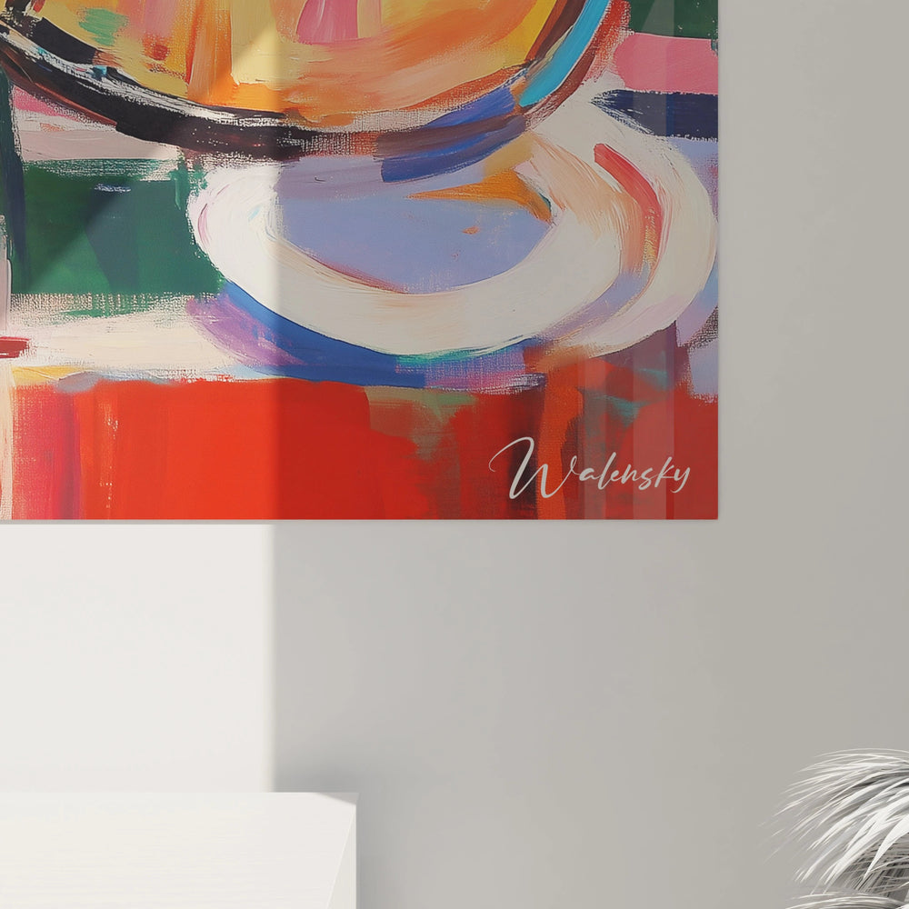 Ce tableau trouvera sa place idéale dans votre salon, où il deviendra le point focal captivant de votre décoration. Il enrichira aussi un espace dédié à la musique ou un coin convivial, stimulant la créativité et l’échange. Associez-le avec des meubles en bois naturel et des accessoires métalliques fins pour créer un équilibre parfait entre intensité chromatique et élégance raffinée.