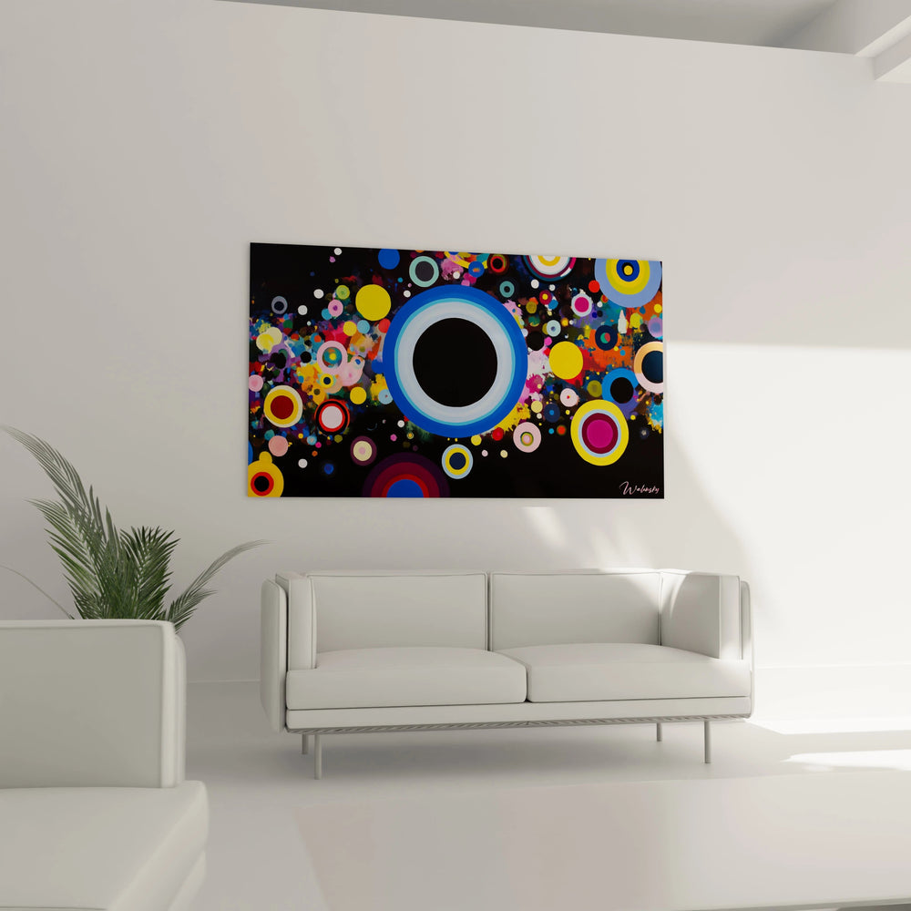 Entrez dans un univers oĂč lâart rencontre la profondeur infinie du cosmos grĂące Ă ce tableau unique, hommage vibrant Ă Wassily Kandinsky. Chaque cercle, chaque Ă©clat de couleur, semble flotter dans un espace sidĂ©ral, Ă©voquant un ballet cĂ©leste dâĂ©toiles et de planĂštes. Cette Ćuvre transcende les limites du dĂ©cor traditionnel pour vous offrir une immersion visuelle saisissante, pleine de mystĂšre et dâharmonie.