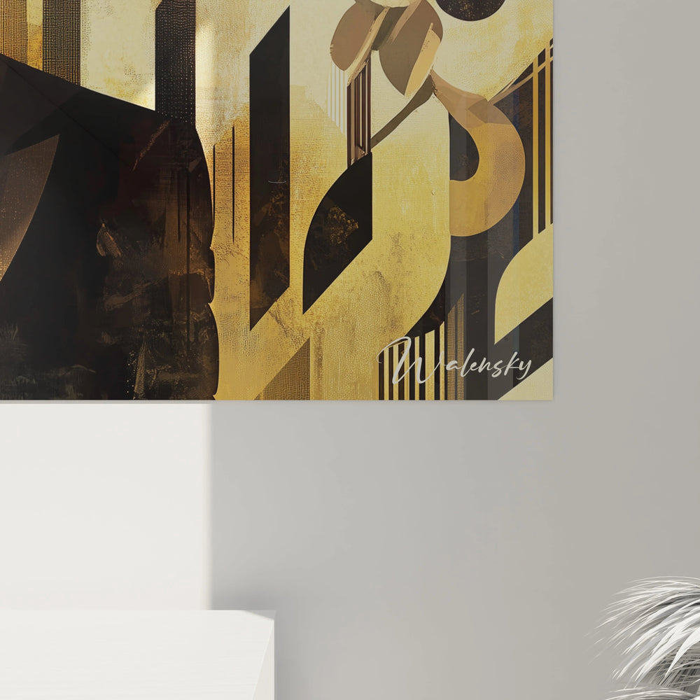 Imaginez un visage sans contours, suggéré par des formes géométriques délicates où chaque trait, chaque angle, révèle une profondeur insoupçonnée. Ce tableau joue sur le contraste entre la rigueur architecturale et la douceur organique, invitant à une immersion visuelle qui éveille les sens et stimule l’imagination. Le regard se perd dans l’équilibre subtil des teintes chaudes d’or et de beige, rehaussées par un noir intense qui confère intensité et luxe.