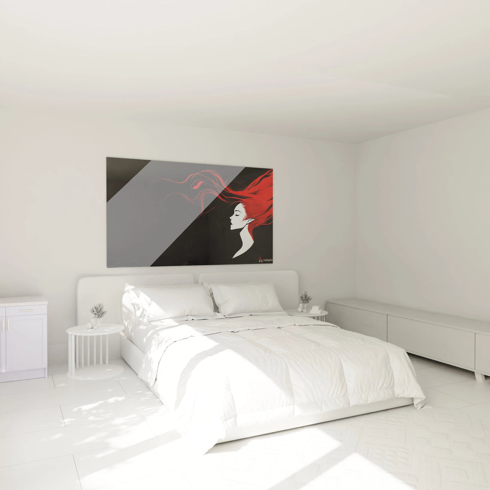 Imaginez un tableau qui transcende les simples décors, apportant à votre intérieur une aura de mystère et d’élégance rare. Ce tableau inspiré par l’icône Edvard Munch capture une silhouette féminine au profil élancé, où le calme du visage contraste magnifiquement avec le dynamisme de la chevelure rouge flamboyante. Chaque trait invite à un voyage visuel, où fluidité et intensité dialoguent dans un équilibre subtil.