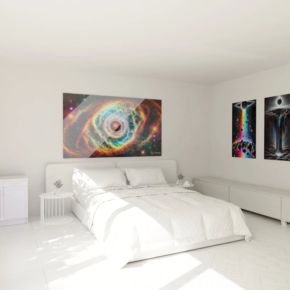 Le Tableau Iris de l’Univers s’intègre avec élégance dans des décors modernes ou minimalistes, où ses couleurs vibrantes deviennent la pièce maîtresse. Associez-le à des éléments métalliques ou des luminaires LED pour en faire rayonner toute la magie nocturne et offrir à vos visiteurs une expérience visuelle unique.