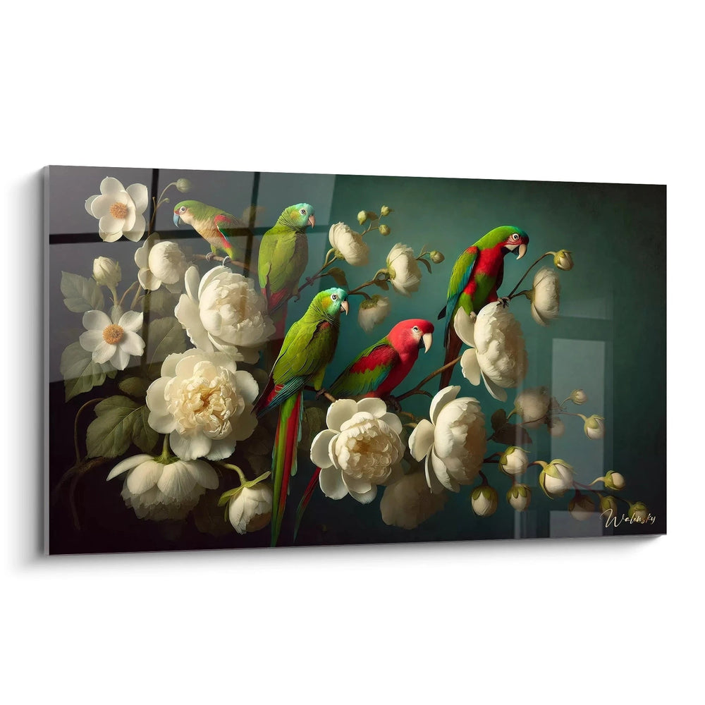 Imaginez un instant suspendu au cœur d'un jardin secret, où la nature s’exprime dans toute sa splendeur grâce à ce tableau Jardin Exotique - Edition Perroquet Animaux. Vous accueillez chez vous une scène vivante et raffinée, où la grâce colorée des perroquets se marie harmonieusement à la pureté des fleurs blanches environnantes. Chaque détail minutieusement capturé vous invite à un voyage sensoriel unique, une communion subtile entre la faune exotique et la douceur florale.