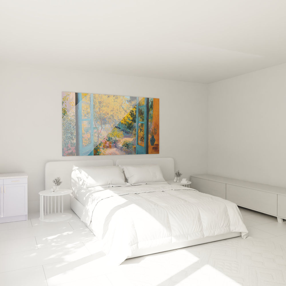 Élevez votre espace avec notre Tableau Jardin Fleuri depuis Fenêtre Ouverte - Vue d'Automne Colorée. Imaginez-vous vous prélassant dans votre salon, admirant la douceur d'une brise d'automne tandis que des teintes chaleureuses embrassent votre intérieur. Ce tableau vous offre une fenêtre sur un jardin éclatant, évoquant la beauté des saisons qui passent.