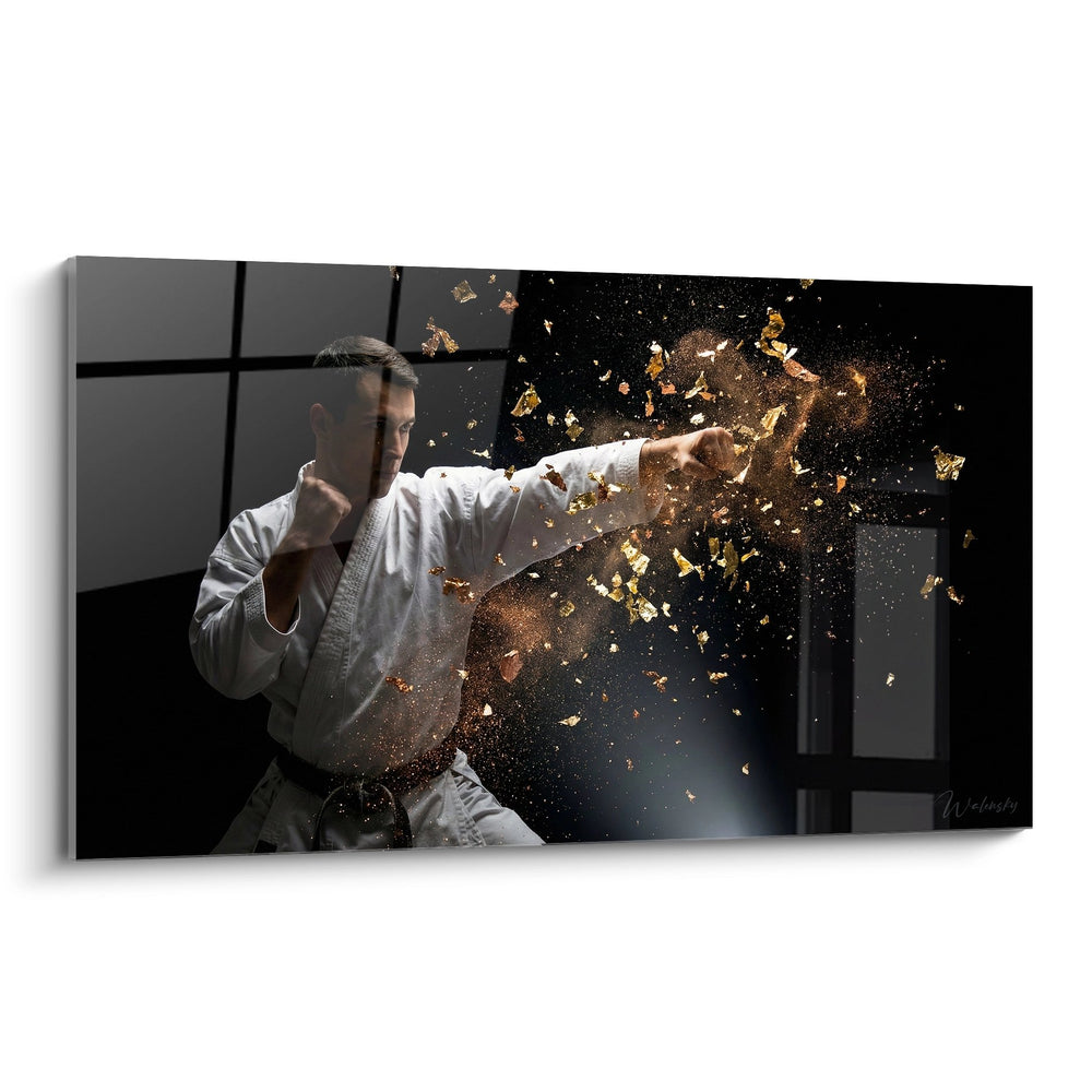 Tableau Karatéka Cassant une Planche - Explosion de Puissance - Edition Karaté