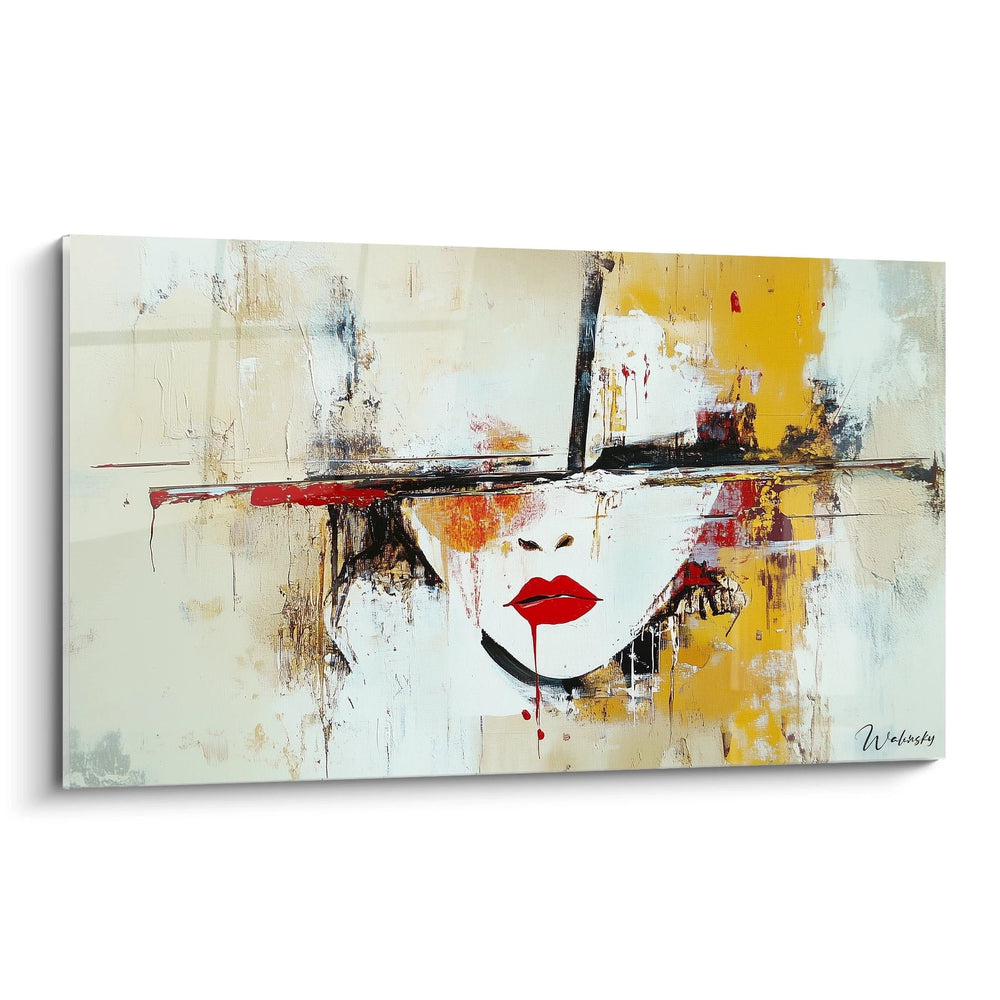 Ce tableau est né d’une quête intime, celle de capturer ce fragile équilibre entre force et vulnérabilité. Ses lignes brisées et les éclats de rouge profond incarnent cette tension puissante, où chaque détail raconte une histoire de blessures transformées en résilience. Les lèvres rouges, audacieuses et sensuelles, viennent troubler la sérénité des traits sombres, symbolisant la passion qui persiste malgré les fractures invisibles de l’existence.