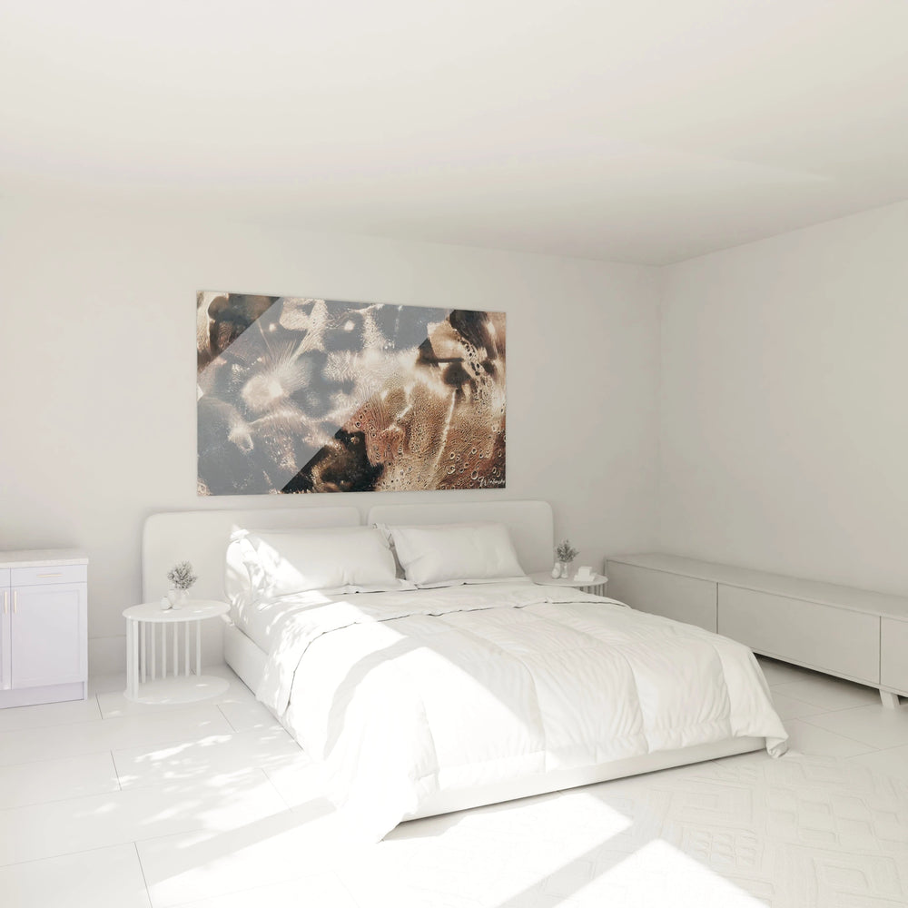 Cette création abstraite et contemporaine s’intègre parfaitement dans un intérieur moderne, apportant une touche d’élégance céleste qui invite à la réflexion et au rêve.