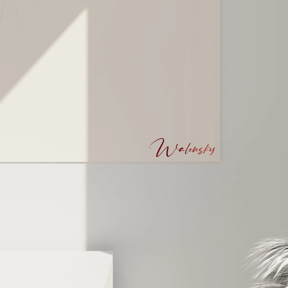 L’association subtile du beige, du noir et du rouge sélectionnés avec soin confère au tableau une élégance intemporelle. L’équilibre entre les lignes précises et les éléments organiques invite à une contemplation prolongée. Accompagnez cette œuvre d’accessoires en velours rouge, de luminaires doux ou de pièces métalliques noires pour renforcer son impact visuel et son raffinement.