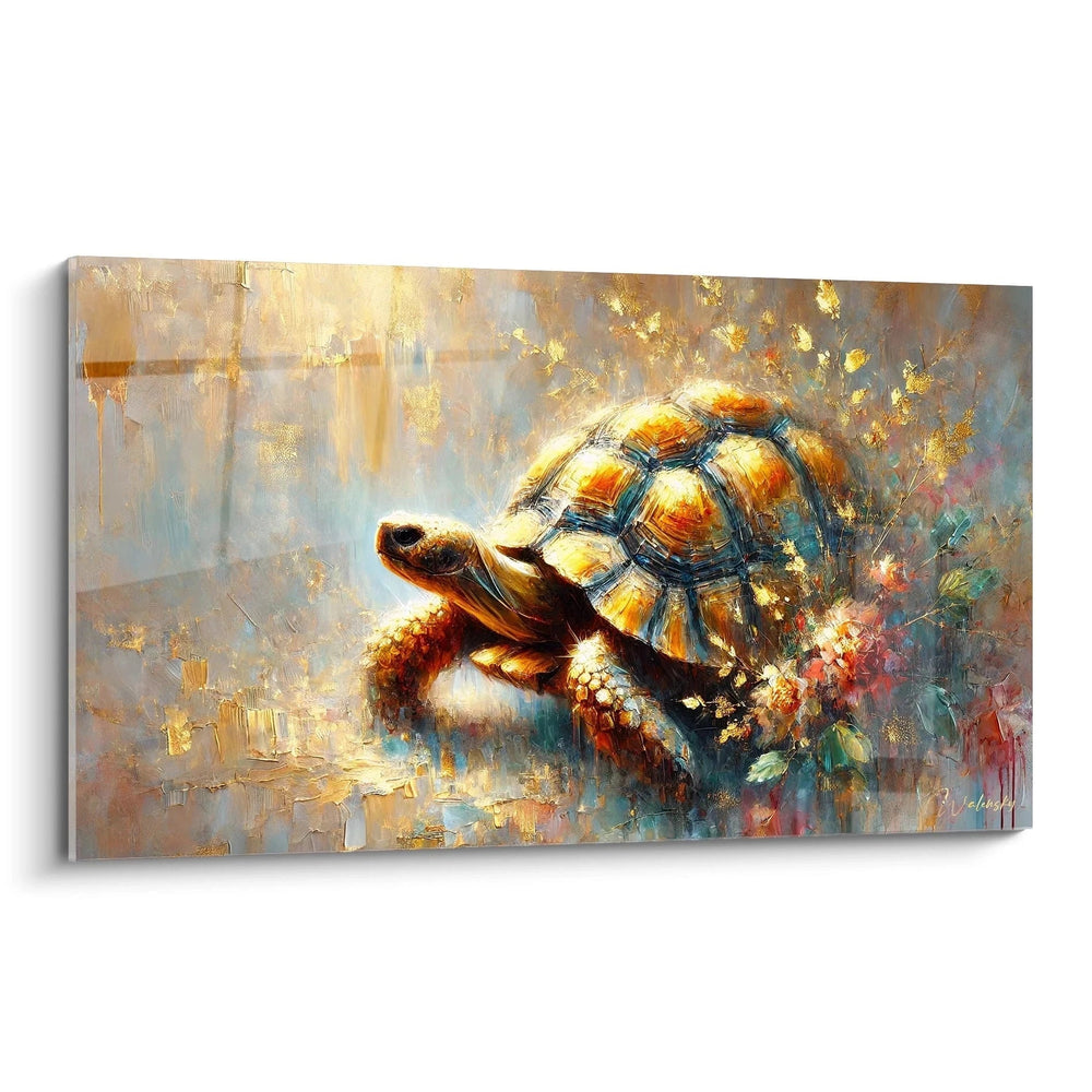 La tortue, emblème de persévérance et de sagesse, vous rappelle que chaque pas, même lent, est une avancée vers vos objectifs, une philosophie que ce tableau incarne avec élégance et simplicité.