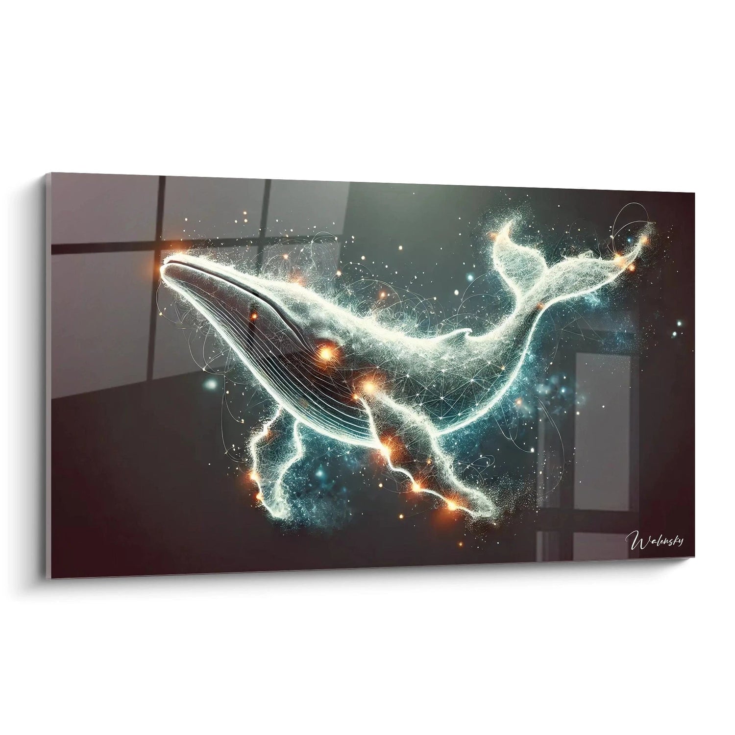 Imaginez un espace où la majesté des profondeurs marines rencontre l'immensité infinie du cosmos. Le Tableau L'âme de l'océan - Edition Baleine Animaux transporte votre regard au-delà des limites terrestres, vous invitant à plonger dans un univers où la baleine devient une constellation en mouvement, tissée de lumière et d’étoiles.