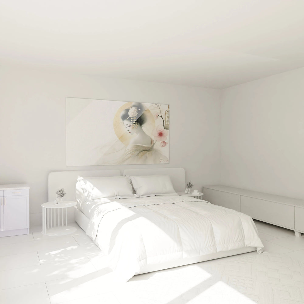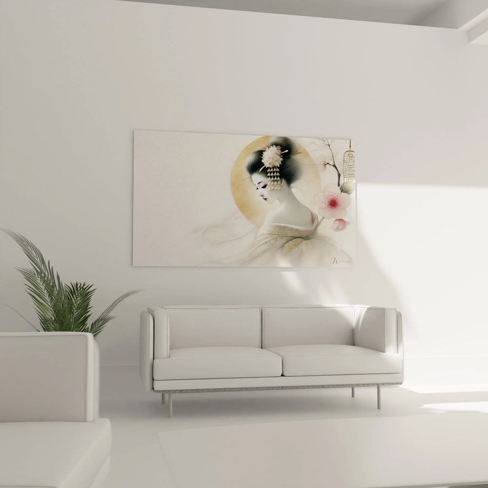 Laissez-vous emporter par la grâce subtile et la délicatesse intemporelle de ce tableau unique, inspiré de la beauté silencieuse d’une geisha traditionnelle japonaise. Chaque détail de cette œuvre a été pensé pour éveiller en vous un sentiment de calme profond et vous transporter vers une ambiance de pure sérénité.