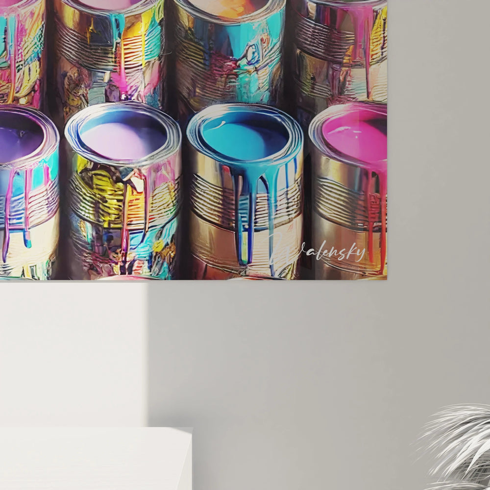 Pour un effet saisissant, mariez ce tableau avec des meubles en métal brossé qui rappellent la texture industrielle des récipients colorés. Accentuez avec des accessoires multicolores, tels que coussins ou lampes, pour créer une continuité visuelle pleine de fraîcheur. Le contraste entre la sobriété d’un cadre minimaliste et la palette éclatante de ce tableau ajoutera une dimension raffinée et contemporaine à votre ambiance.