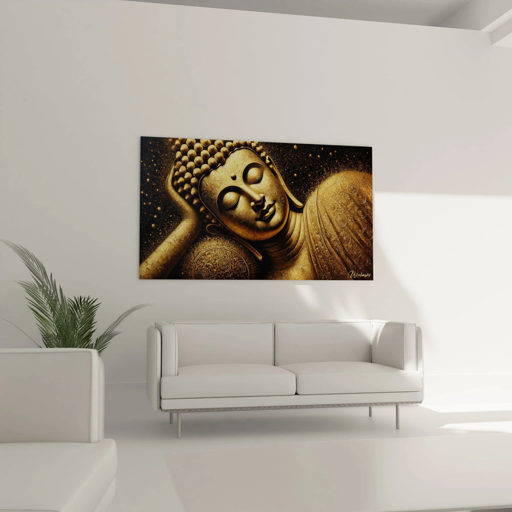 Imaginez un instant votre intérieur baigné d’une aura paisible, où chaque regard posé sur votre tableau Le Repos du Sage apaise l’esprit et invite à la méditation. Cette œuvre d’art unique incarne la quintessence de la tranquillité, capturant la figure du Bouddha dans une posture de repos profond, sublime et immersive. C’est plus qu’un simple élément décoratif : c’est une expérience sensorielle qui transforme l’atmosphère de votre espace en un sanctuaire de calme et d’harmonie.