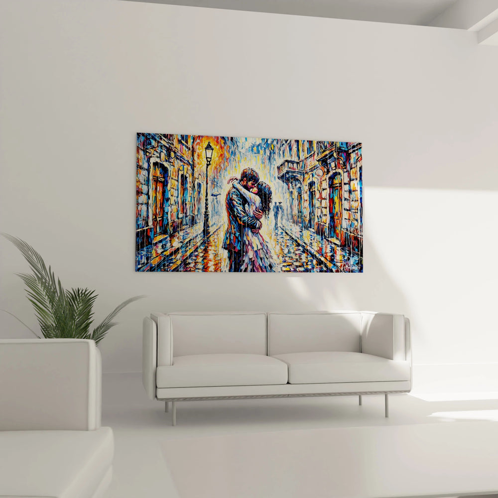 Ce tableau en verre acrylique de grande dimension diffuse une lumière irréelle, mettant en valeur la richesse des teintes passionnées et la douceur des détails minutieusement travaillés. Laissez ce chef-d’œuvre illuminer votre salon ou votre chambre, apportant une touche d'élégance subtile et une atmosphère chaleureuse, à la fois vivante et apaisante.