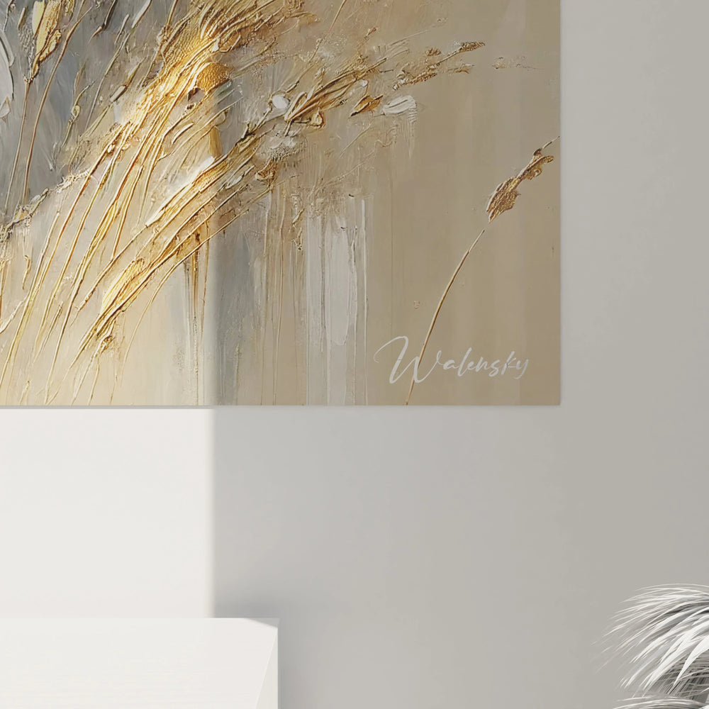 Ce tableau est bien plus qu’une simple décoration : c’est une source de sérénité qui tranche avec l’agitation extérieure. Son ambiance tempérée, rythmée par des nuances or, beige et blanc, offre un équilibre parfait entre chaleur et fraîcheur. Sa texture riche et subtile fait danser la lumière, tandis que le regard du tigre capte votre attention avec une sagesse presque mystique. Vous vous retrouvez instantanément plongé dans une bulle de calme, propice à la méditation et à la contemplation.