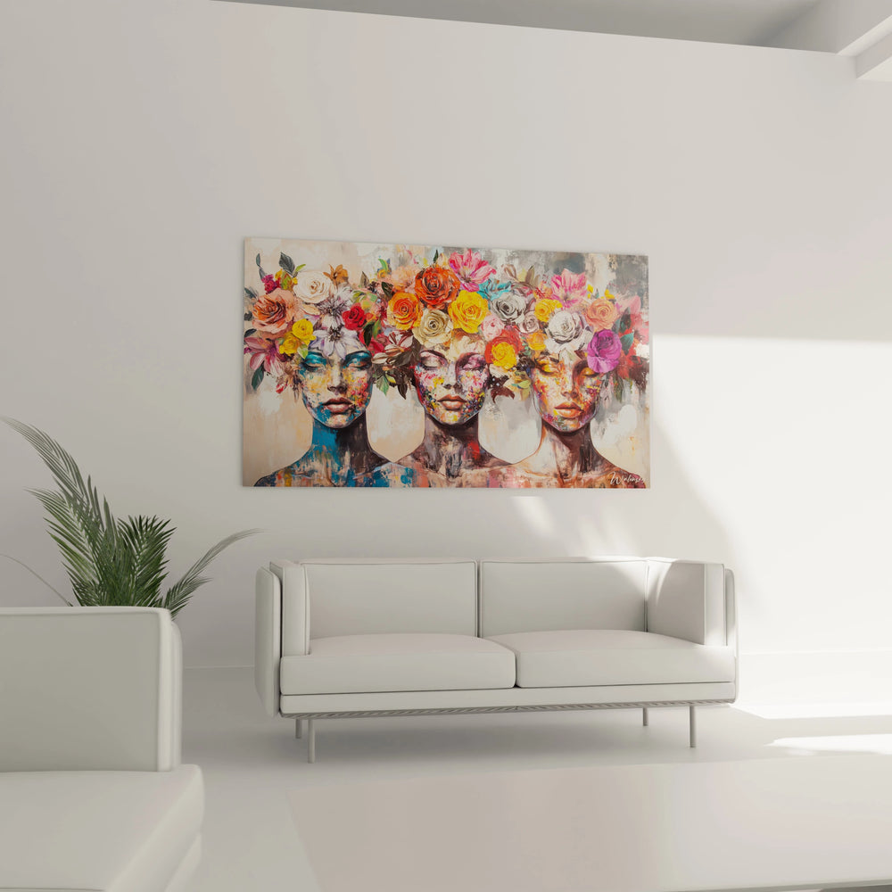 Offrez à votre intérieur une présence unique avec le Tableau Les Muses Fleuries, une œuvre qui transcende le simple décor pour inviter à une expérience sensorielle et émotionnelle profonde. Imaginez un instant où chaque regard posé sur ce tableau vous transporte dans un univers où la féminité et la nature fusionnent en une danse florale exquise, illuminant votre espace de vie d’un éclat à la fois doux et puissant.