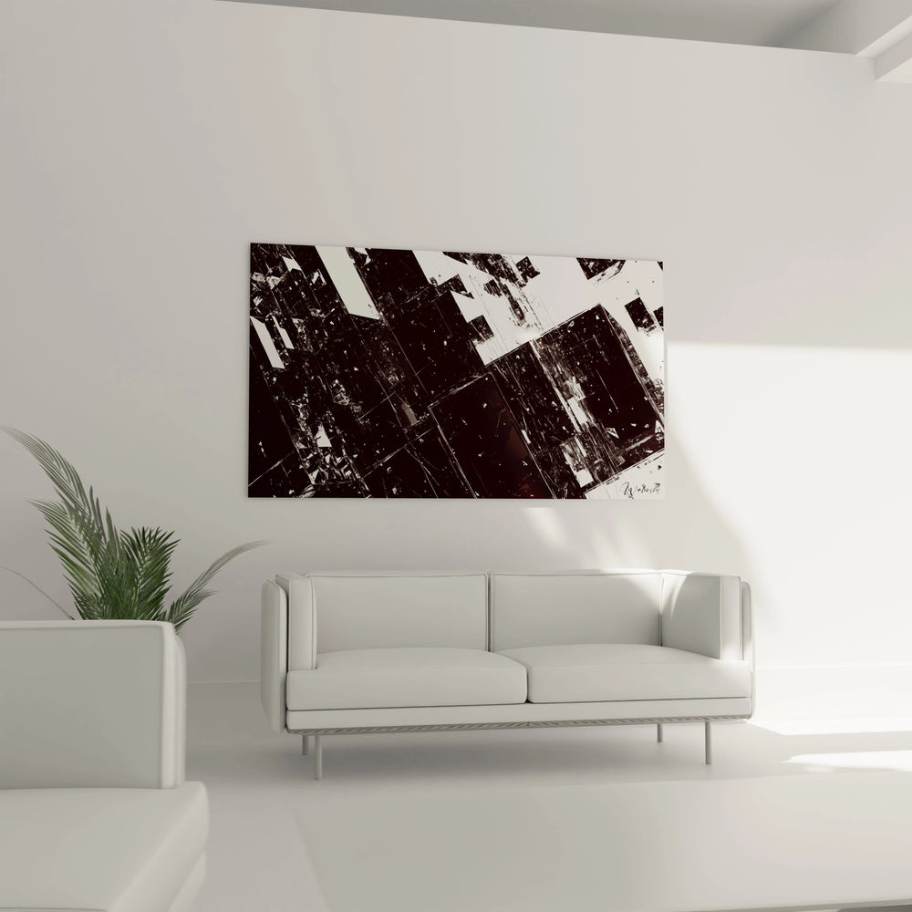 Imaginez les formes éclatant et se recomposant dans un ballet énergique, capturant la tension entre l’ancien et le nouveau, entre la stabilité et le flux. À travers un jeu raffiné de contrastes en noir, blanc et gris, cette œuvre évoque la dualité essentielle de notre monde actuel — où la technologie et la modernité brisent les codes et redessinent notre réalité.