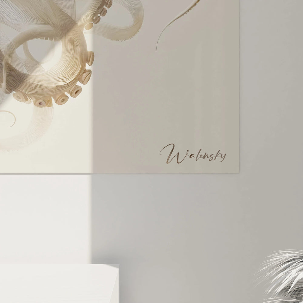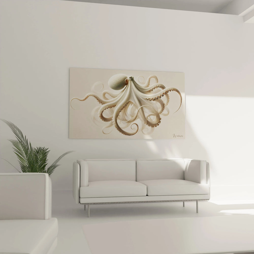 Plus qu'une simple décoration, ce tableau est une invitation à la méditation, une pause suspendue où chaque tentacule se déploie avec une délicatesse presque aérienne. Les nuances subtiles de blanc, beige et argent se mêlent pour créer une atmosphère douce, empreinte de calme et de pureté, qui transforme votre pièce en un havre de paix.