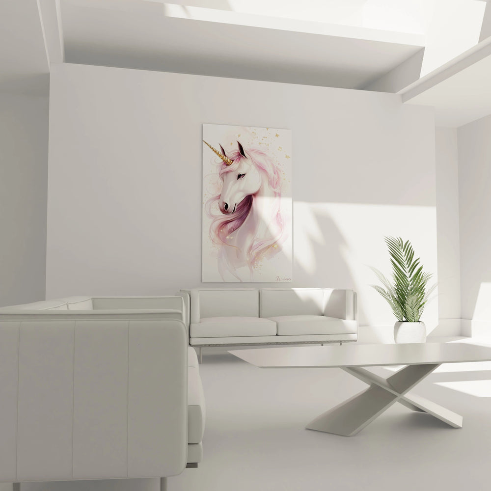 Symbole intemporel de pureté et de bienveillance, cette licorne s’impose avec grâce et délicatesse. Sa crinière fluide, telle une caresse de vent léger, semble danser sous le souffle d’une lumière dorée subtilement scintillante. Ce tableau invite à un voyage sensoriel où chaque détail évoque la tendresse et l’enchantement, créant une ambiance sereine et réconfortante. Imaginez les moments de calme et d’inspiration qu’elle peut offrir, que ce soit dans une chambre douce ou un espace de repos.