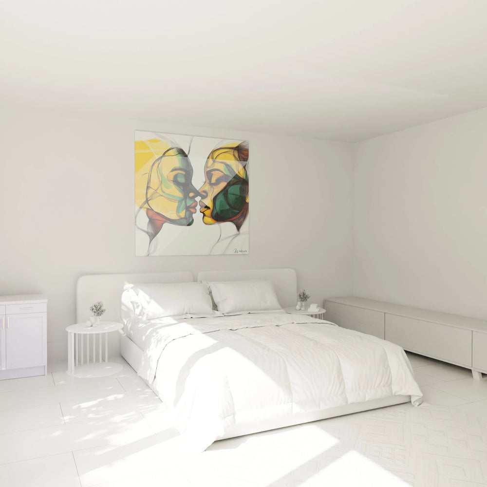 Chaque contour, chaque couleur symbolise la danse subtile entre proximité et distance, fragilité et force. Les profils abstraits, sculptés par des traits sinueux, captent la dualité des émotions qui habitent nos relations. Cette œuvre transporte votre regard d’une tendresse vibrante à une tension palpable, créant une atmosphère contemplative et intime qui invite à la réflexion.