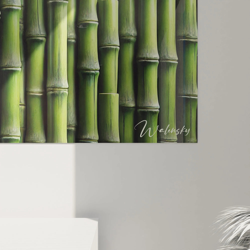 Imaginez-vous pénétrer dans un espace où la tension s’efface, remplacée par une sensation profonde de bien-être. Ce tableau capte l’essence de la résilience et de la souplesse du bambou, symbole d'une force paisible qui remet chaque regard en harmonie avec le rythme de la nature. Son rythme vertical invite à la contemplation, déployant un souffle méditatif qui apaise instantanément l’esprit.