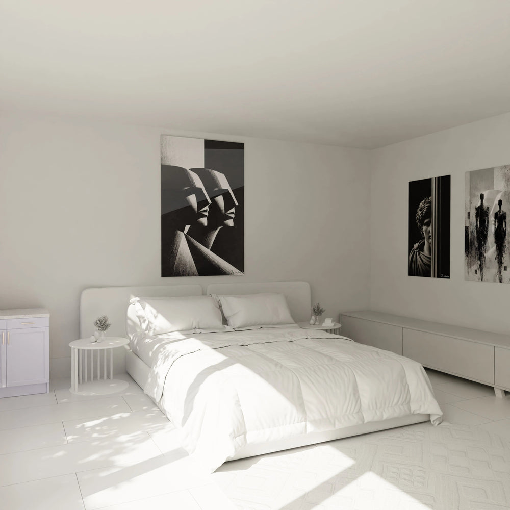 Ajoutez une touche de raffinement en l’accompagnant de mobilier aux lignes épurées et d’accessoires métalliques noirs ou argentés. L’ensemble crée un espace où chaque élément dialogue avec l’œuvre, amplifiant sa présence et son aura.