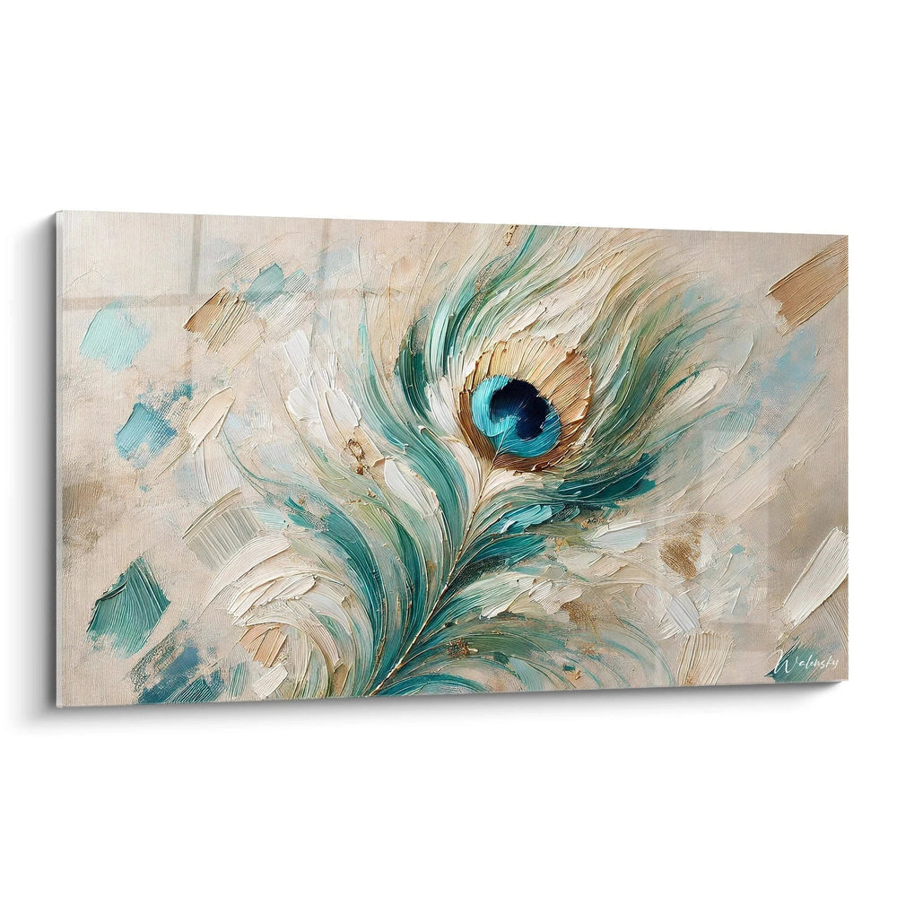 Ce tableau s’inspire des puissants symboles que représente la plume de paon : beauté, raffinement et spiritualité. Conçue pour transcender l'espace, cette création incarne la lumière et le mouvement, comme un murmure discret de la nature capturé pour votre plaisir visuel et émotionnel.
