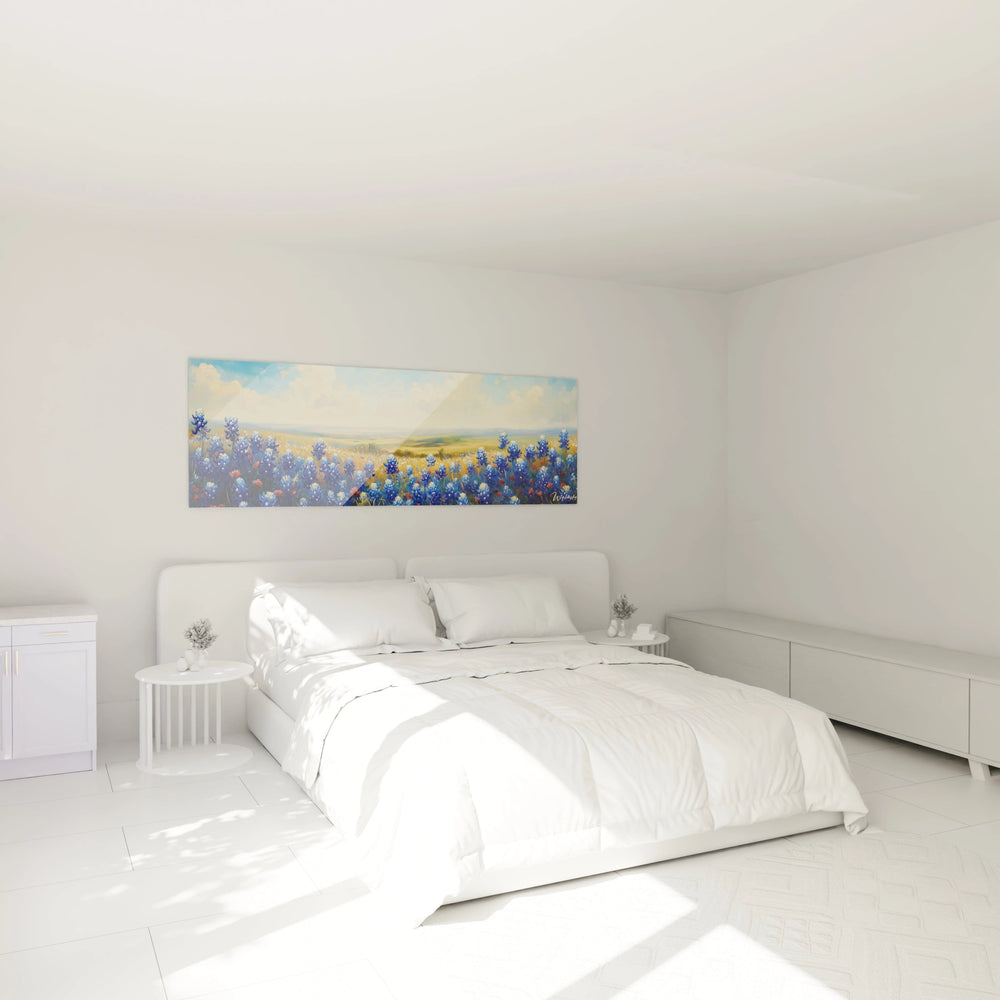 Imaginez un matin d'été où la douce lumière dorée caresse un champ infini de blé, entrecoupé de délicates fleurs de lupin bleu. Le Tableau Lupin Sauvage - édition campagne capture ce moment suspendu avec une intensité rare, offrant à votre intérieur une invitation à la sérénité et à la contemplation.