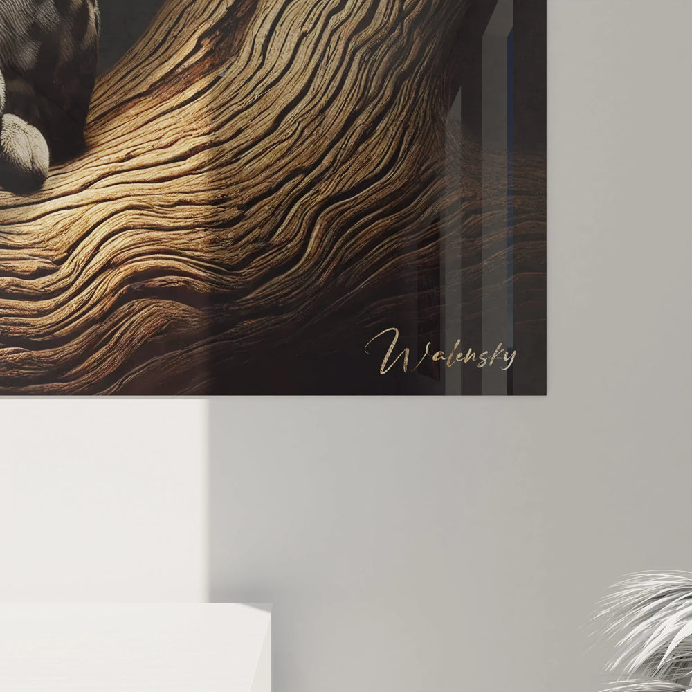 En contemplant ce tableau, vous sentez la fraîcheur humide de la forêt envelopper doucement vos sens. Les détails délicats de la branche, ornée de touches dorées subtiles, évoquent une noblesse rare, tandis que le regard profond et perçant de l’ocelot semble vous appeler à partager un secret sauvage. C’est un moment d’intimité suspendu, où la nature dialogue avec votre espace de vie, apportant un souffle apaisant et une élégance naturelle inégalée.