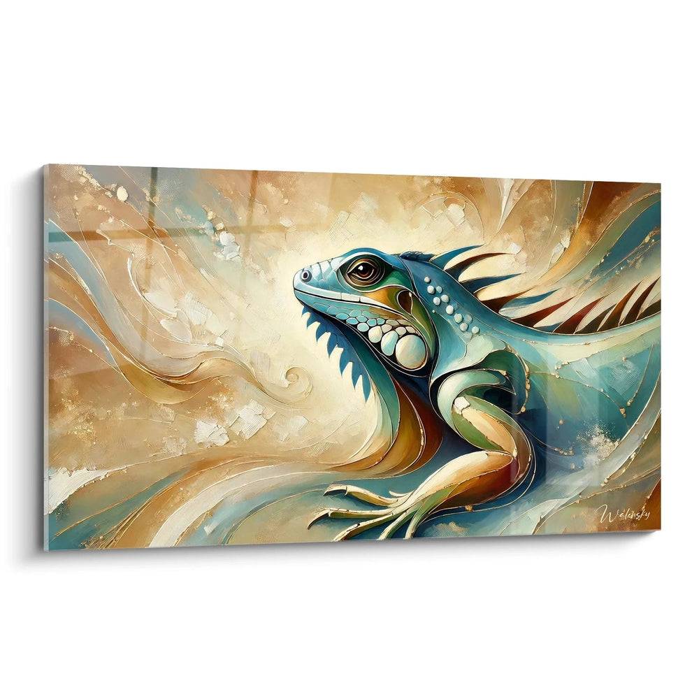 Plongez dans un univers où le calme et l’élégance se rencontrent. Ce tableau vous transporte au cœur d’une nature mystérieuse, incarnée par la majesté tranquille de l’iguane. Chaque regard posé sur cette œuvre révèle une harmonie délicate entre la puissance de l'animal et la douceur discrète de son environnement. Créé pour apaiser votre espace, ce chef-d’œuvre est une véritable ode à la maîtrise du silence et à la beauté sauvage.