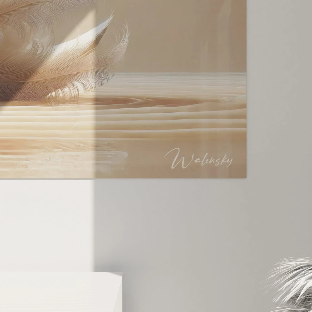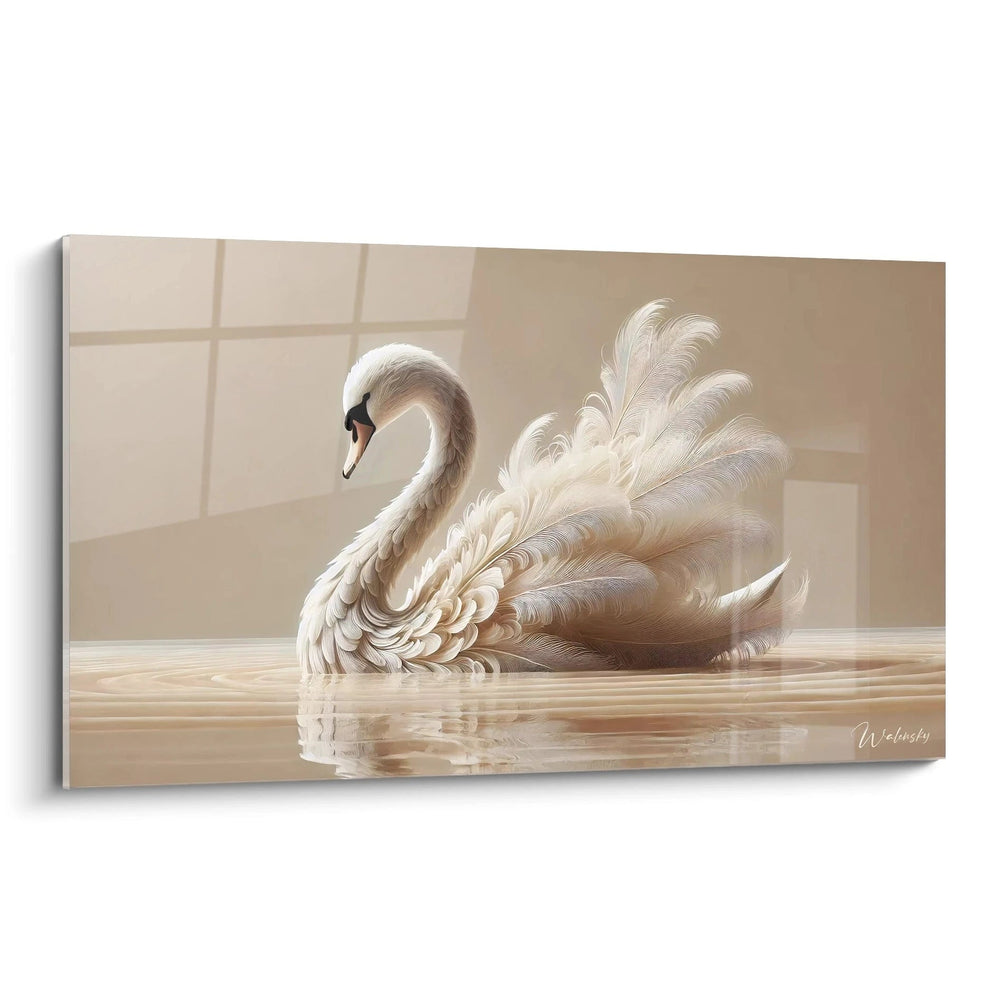 Ce chef-d’œuvre élégant met en lumière la pureté et la finesse du cygne, symbole universel de paix et d’équilibre. Chaque plume semble caressée par une lumière douce et fluide, tandis que les reflets sur l’eau créent une ambiance aérienne et presque méditative. Le tableau vous transporte hors du tumulte quotidien, vous offrant un havre de tranquillité et d’harmonie.