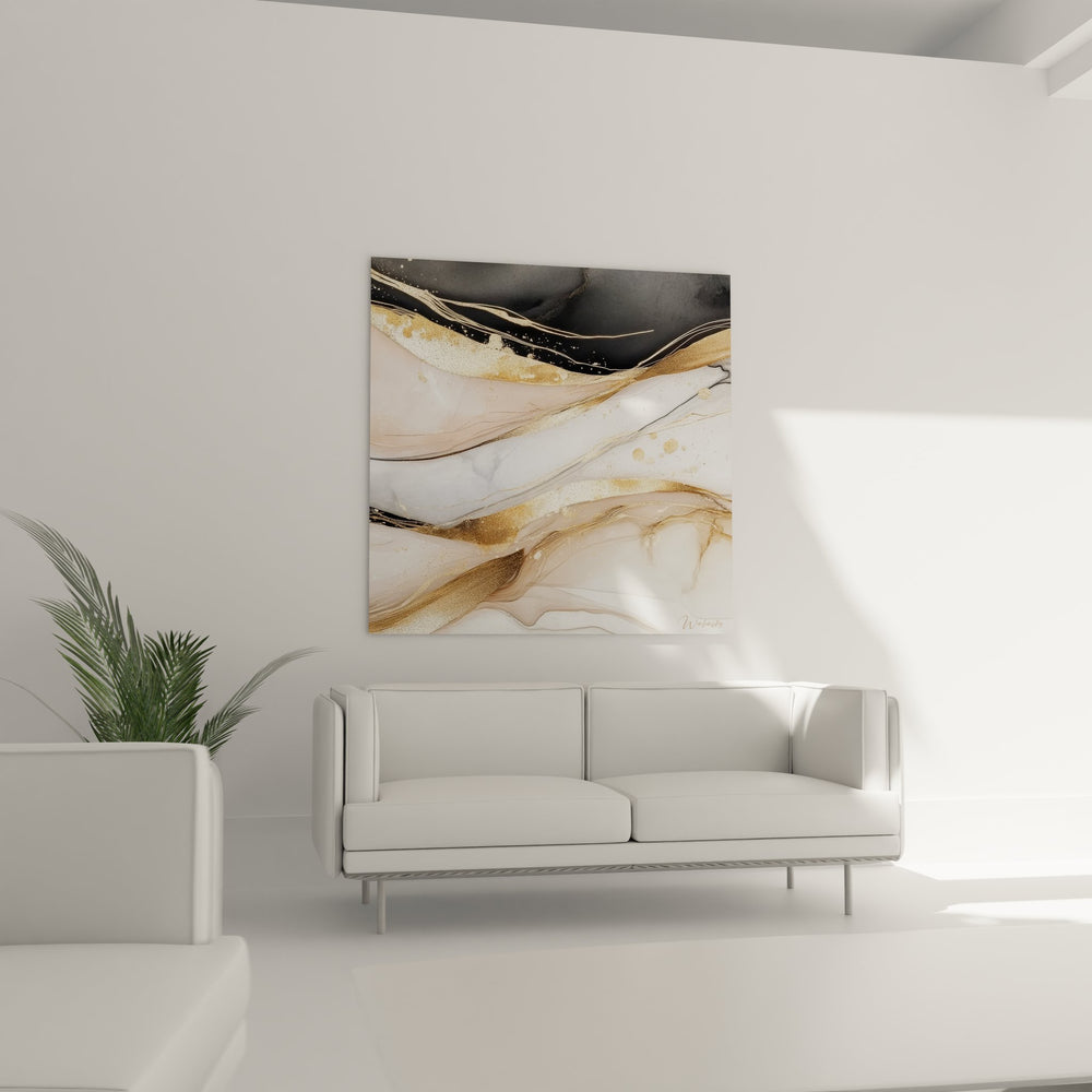 Notre tableau est conçu pour ceux qui apprécient le raffinement et le bon goût. Chaque détail est soigneusement pensé pour apporter une touche de luxe et d'élégance à votre intérieur. La fluidité des formes évoque le marbre précieux, tandis que les éclats dorés ajoutent une note de chaleur et de sophistication inégalée.