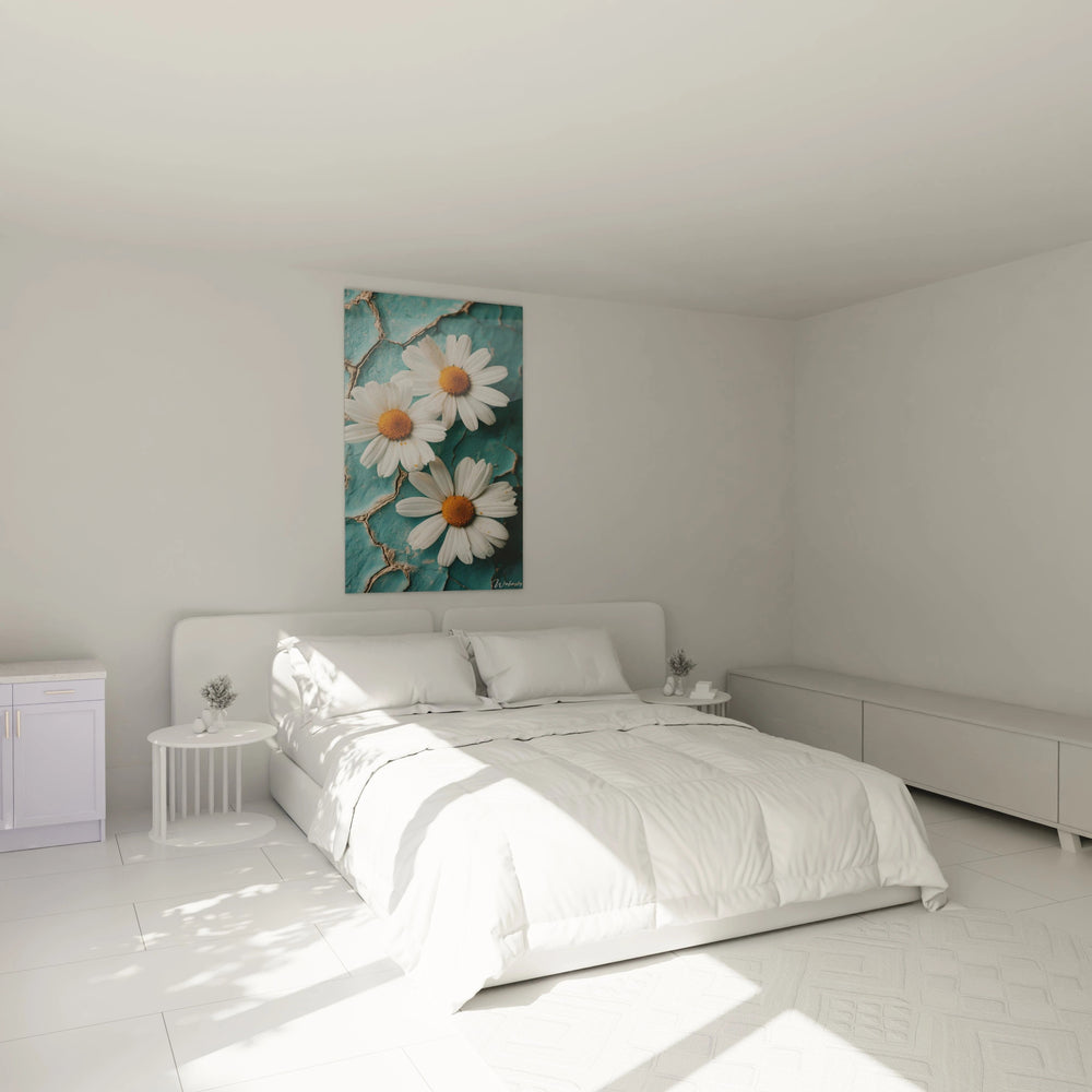 Cette Ćuvre sublime cĂ©lĂšbre la simplicitĂ© dâune fleur emblĂ©matique dont la blancheur Ă©clatante symbolise la puretĂ© et lâinnocence. Chaque pĂ©tale dĂ©voile une texture subtile, invitant Ă la contemplation, tandis que le fond aux nuances bleutĂ©es vieilli Ă©voque un doux murmure du temps qui passe. Cette harmonie entre fragilitĂ© florale et force silencieuse crĂ©e un Ă©quilibre Ă©motionnel rare, transformant votre piĂšce en un cocon de sĂ©rĂ©nitĂ© et dâĂ©lĂ©gance naturelle.