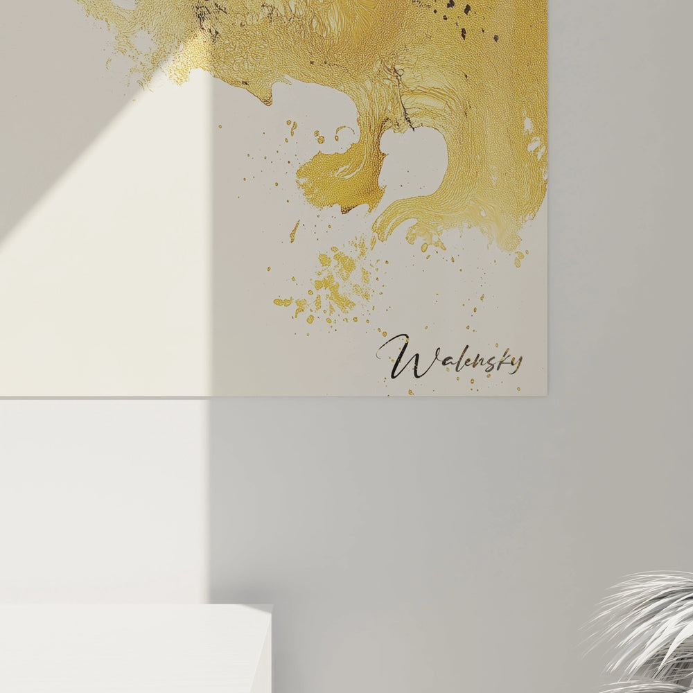 L'unicité de ce tableau abstrait unique doré réside dans son équilibre parfait entre spontanéité et maîtrise technique. Contrairement aux œuvres purement gestuelles, celle-ci présente une structure sous-jacente qui révèle une intention artistique mûrement réfléchie. Les détails impossibles à reproduire incluent les formations organiques naturelles qui émergent du mélange des matières, créant des motifs uniques comparables aux veines du marbre. La signature discrète intégrée harmonieusement dans la composition témoigne de l'authenticité de l'œuvre. Les variations de brillance et de matité créent des effets visuels changeants selon l'éclairage ambiant. Cette art mural abstrait doré possède également des micro-détails qui se révèlent uniquement lors d'une observation rapprochée, ajoutant des couches de lecture successives à l'expérience esthétique.