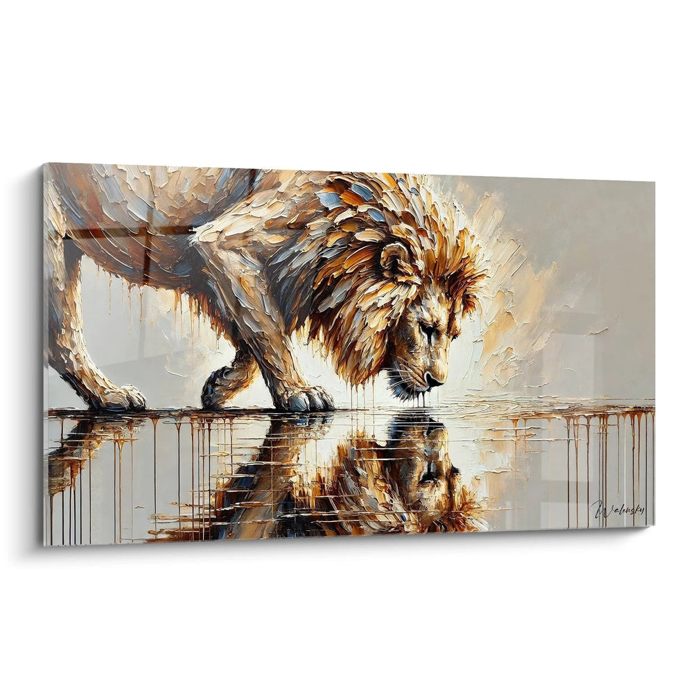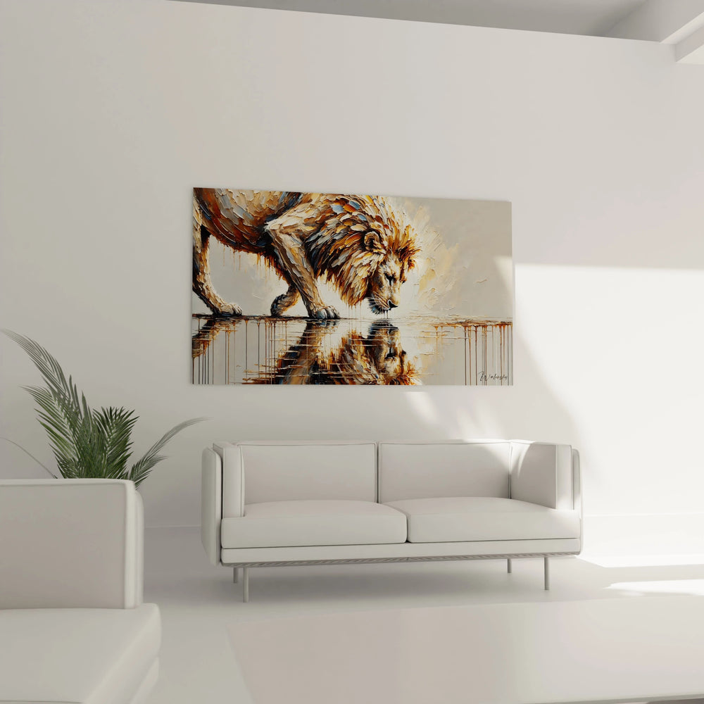 Laissez-vous envoûter par la force et la douceur de ce Tableau Miroir de Fierté - Edition Lion Animaux, une œuvre qui transcende la simple décoration pour devenir un véritable symbole d’élégance et d’introspection. Imaginez ce majestueux lion, puissant et fier, capturé dans l’instant unique où il rencontre son reflet sur l’eau paisible. Ce moment intense entre l’apparence et la vérité vous invite à une plongée dans la découverte de soi, apportant à votre intérieur une ambiance à la fois noble et apaisante.