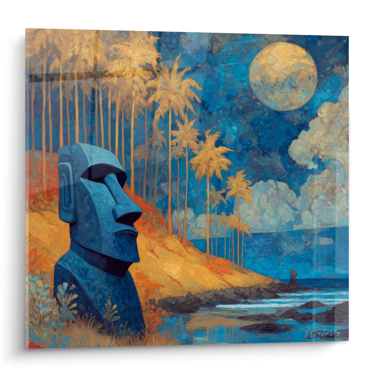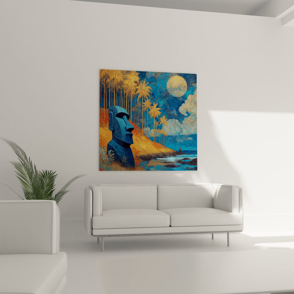 Tags : Moai île de Pâques, art polynésien, paysage tropical, statue ancestrale, décoration insulaire