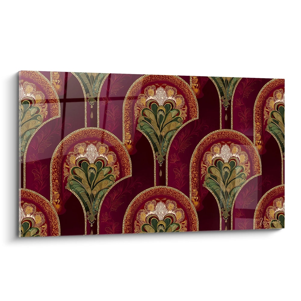 Tableau Motifs Art Déco - Élégance Bordeaux et Or - Edition Art déco