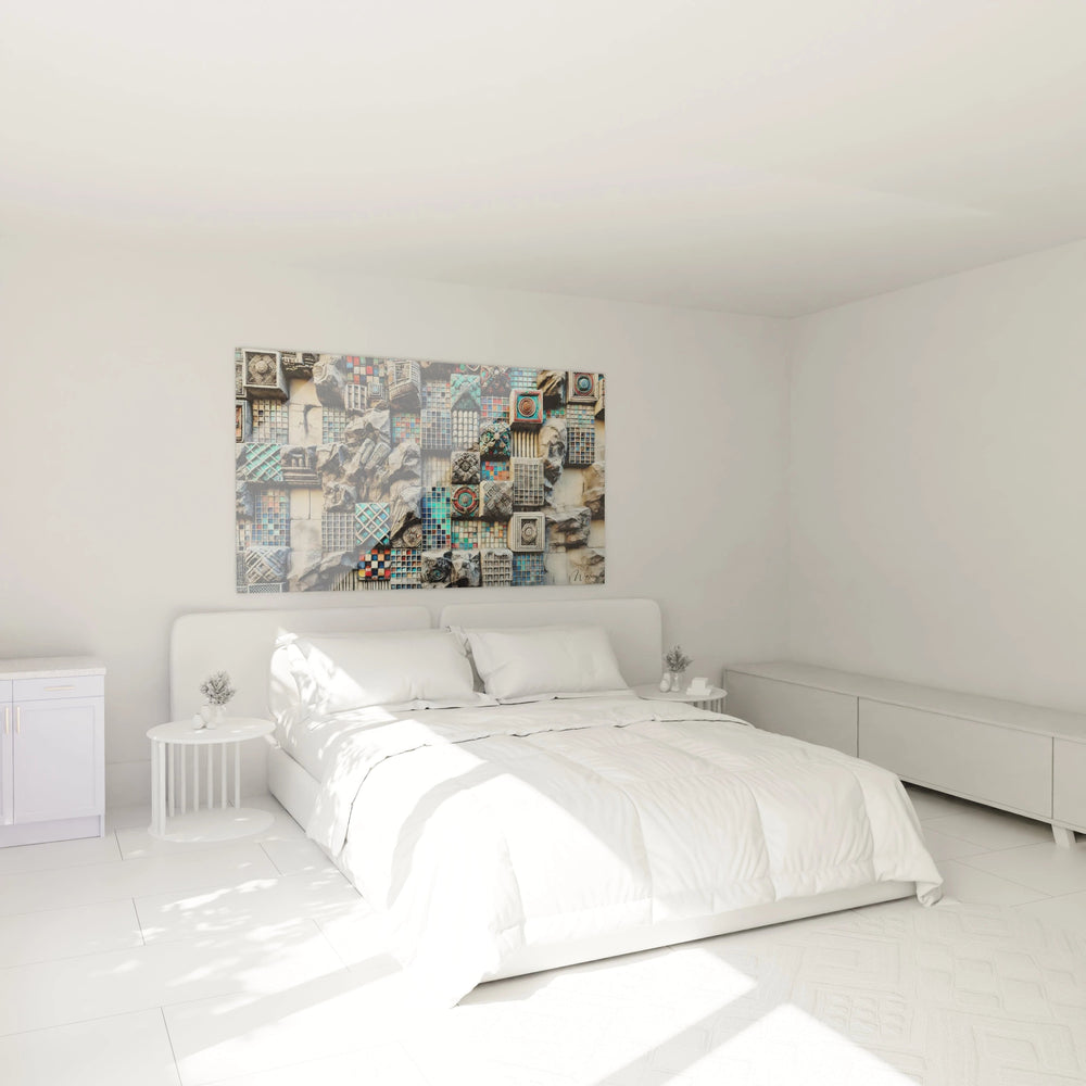 Le Tableau Mur des Secrets est une invitation à célébrer la beauté des contrastes et la richesse des détails. Chaque fragment est une pièce d’un puzzle passionnant, un hommage aux imperfections parfaites qui rendent chaque instant précieux. Offrez-vous cette expérience esthétique exclusive, et laissez cette mosaïque transformer votre décor en une véritable œuvre d’art vivante.