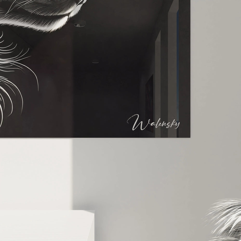 La pureté du contraste monochrome sublime les textures du pelage et les courbes naturelles, offrant une esthétique sobre et contemporaine. Ce choix stylistique confère à la pièce une élégance intemporelle, qui s’intègre parfaitement dans des espaces modernes tout en insufflant une atmosphère méditative et inspirante. La simplicité raffinée de ce tableau permet à votre intérieur de respirer, tout en mettant en valeur une œuvre artistique d’une grande finesse.
