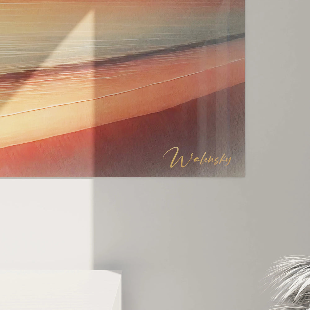 Dès le premier regard, laissez-vous envelopper par la douceur des teintes chaudes mêlées à des bleus profonds, évoquant le spectacle hypnotisant d’un soleil se couchant lentement sur la mer paisible. Cette œuvre respire l’apaisement, offrant un refuge visuel idéal lorsque vous souhaitez ralentir, prendre une pause et savourer l’instant présent.
