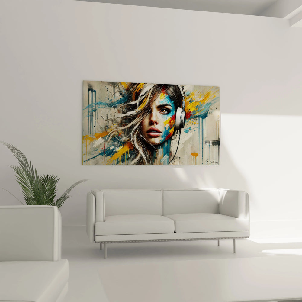 Parfait pour un salon moderne ou une chambre au style contemporain, ce tableau offre également une véritable source d’inspiration dans un bureau créatif ou un espace dédié à la musique. Il s'intègre à merveille dans un intérieur épuré où son impact visuel prendra toute sa dimension, entouré de mobilier élégant en bois clair ou métal.