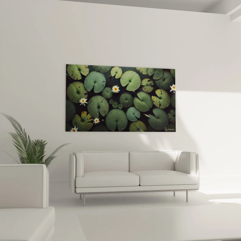 Ce tableau est conçu pour vous offrir un moment suspendu, loin du tumulte quotidien. En accrochage dans votre salon ou votre chambre, il vous enveloppe d’une aura de tranquillité où la nature devient votre refuge intime. Les feuilles de nénuphar, ornées de fines nervures et subtilement éclairées, semblent respirer au rythme doux de l’eau. Cette œuvre invite à ralentir, à apprécier la simplicité et la beauté pure qui se cache dans ce décor aquatique.