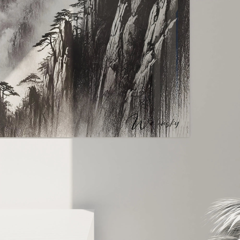 Le style épuré et minimaliste de ce tableau puise son essence dans l’art des lavis, technique qui confère à la brume son caractère éthéré et mouvant. Inspiré par la sagesse et la philosophie zen, cet Édition paysage capture l’équilibre parfait entre silence et mystère, vous offrant un véritable espace de contemplation intérieure. L’harmonie des formes et des textures, évoquant les classiques chinois, magnifie le pouvoir apaisant de la nature.