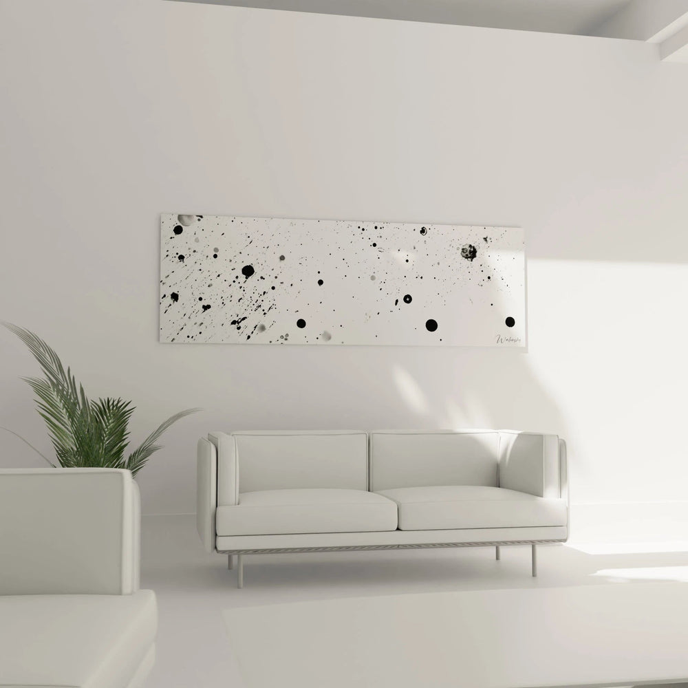 Imaginez un jeu harmonieux où la pureté éclatante du blanc se mêle à des éclats noirs atypiques, formant une composition qui rappelle les mystères infinis des nébuleuses. Chaque tâche, unique, semble vibrer, apportant profondeur et dynamisme à votre pièce. Ce contraste raffiné capte la lumière de manière délicate, illuminant votre espace de vie tout en créant une atmosphère apaisante et sophistiquée.